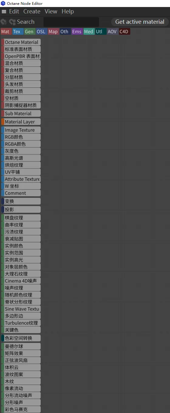实际体验也印证了这一点:目前仅有 “Octane Settings(Octane 设置)”面板基本完成汉化,其余大部分界面(尤其是节点参数)仍为英文。节点名称虽已翻译,但其内部属性尚未本地化。